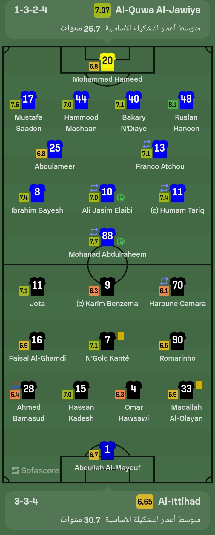 كريم بنزيما حصل على تقييم 6,3، خلال مباراة الاتحاد السعودي ضد القوة الجوية العراقي، في دوري أبطال آسيا، وفقًا لموقع سوفا سكور، كأقل اللاعبين تقييمًا في اللقاء.