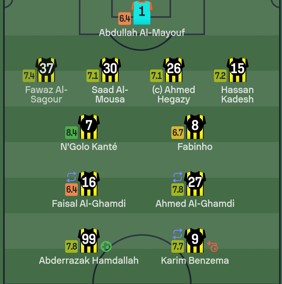 وحصل كريم بنزيما، على تقييم 7.7، بعدما سجل هدفًا في مرماه بالخطأ وصنع هدف التعادل لفريق اتحاد جدة.