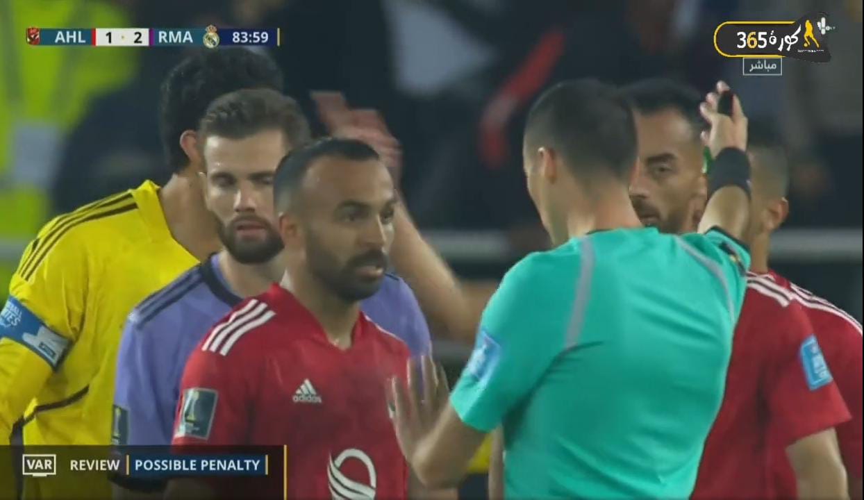 شهدت الدقائق الأخيرة من مباراة الأهلي وريال مدريد في نصف نهائي كأس العالم للأندية مشادة بين لاعبي الفريقين، أثناء مراجعة الحكم للفار.