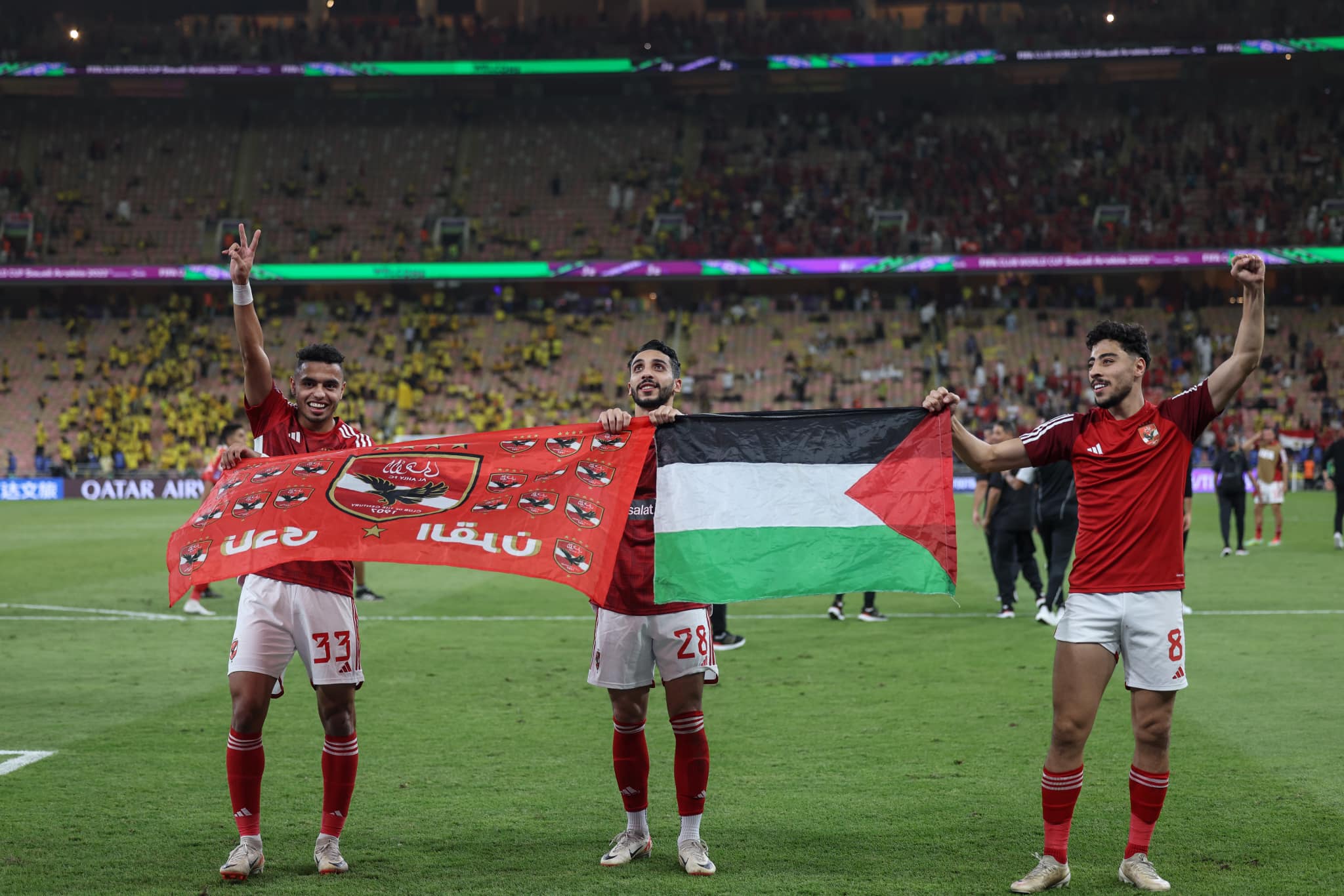 وجه لاعبو النادي الاهلي وجماهيره، رسالة دعم ومساندة إلى فلسطين، عقب مباراتهم ضد الاتحاد السعودي في الدور ربع النهائي من كأس العالم للأندية