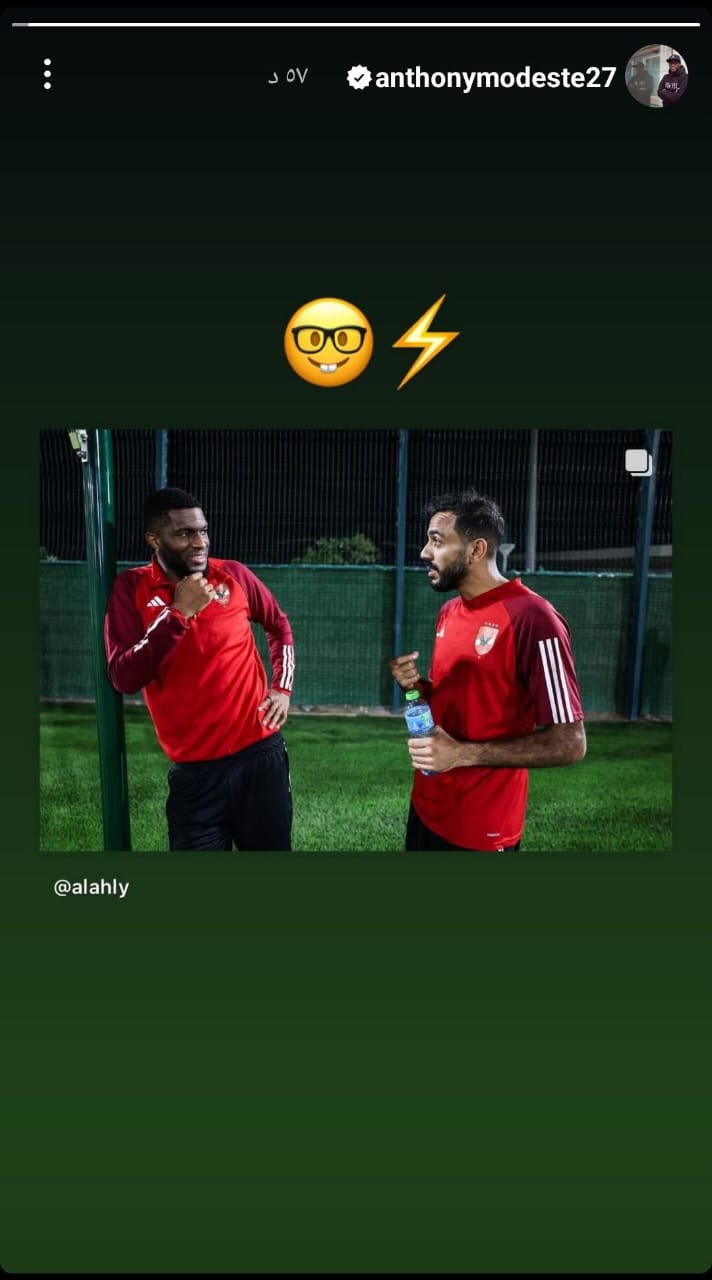 ونشر المهاجم الفرنسي، صورة له من تدريبات النادي الاهلي رفقة محمود كهربا، عبر خاصية “ستوري” على موقع التواصل الاجتماعي “إنستجرام”، بابتسامة خفيفة، مع وضع رموز تعبيرية.