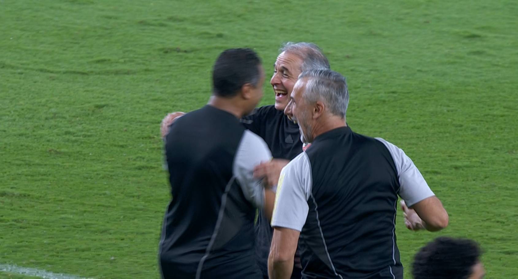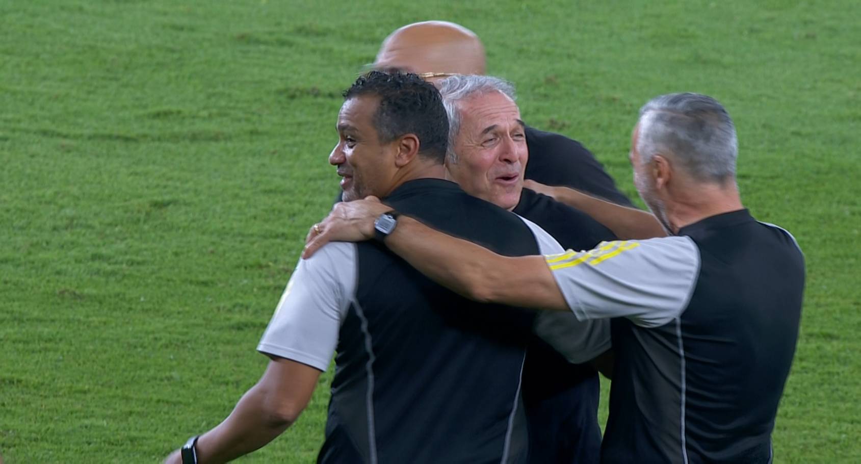 وانطلق كولر فرحًا في ملعب المباراة بعد اطلاق الحكم صافرته واحتفل بالانجاز العالمي مع جهازه المعاون واللاعبين.