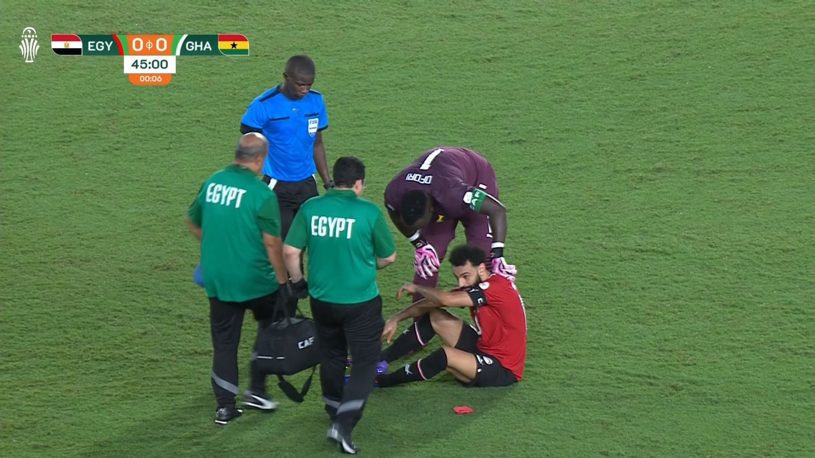وتعرض محمد صلاح للإصابة في مباراة منتخب مصر ضد غانا، ليغادر اللقاء ويثير القلق عن استكماله مشوار الفراعنة في البطولة الأفريقية.