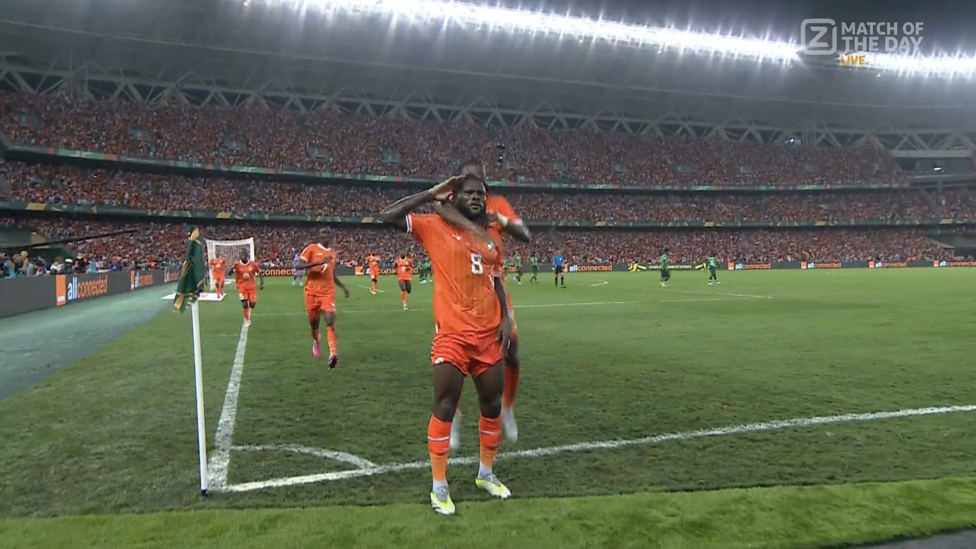 وسجل كيسيه هدف التعادل لصالح كوت ديفوار في الدقيقة 63، من ضربة ركنية من الجانب الأيسر، ليحولها الإيفواري، برأسه قوية داخل الشباك.