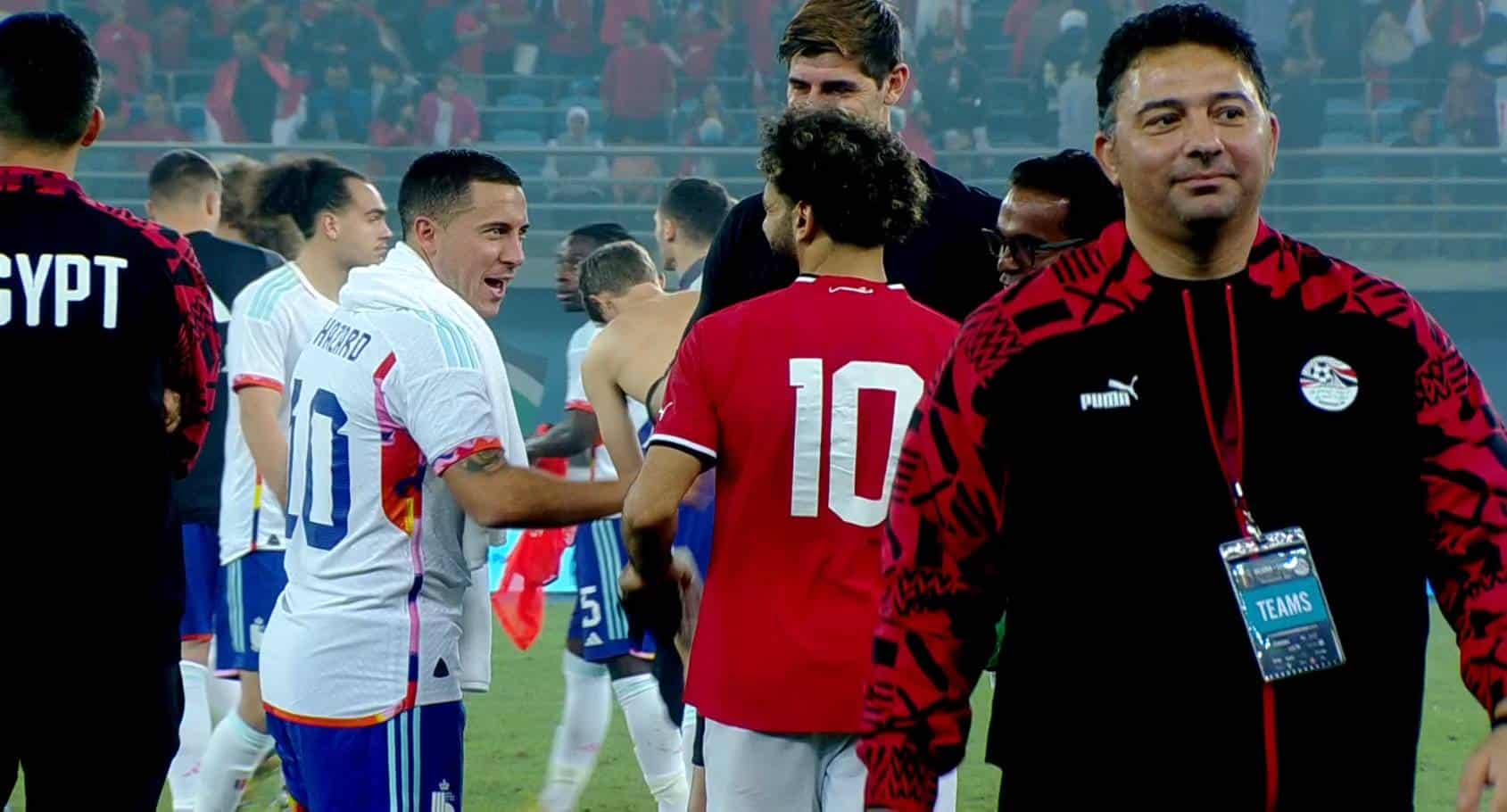 دخل الدولي محمد صلاح نجم منتخب مصر ونادي ليفربول الإنجليزي في وصلة مزاح مع النجم إيدين هازارد لاعب ريال ندريد الإسباني ومنتخب بلجيكا، وذلك بعد مباراة الفراعنة وبلجيكا الودية.