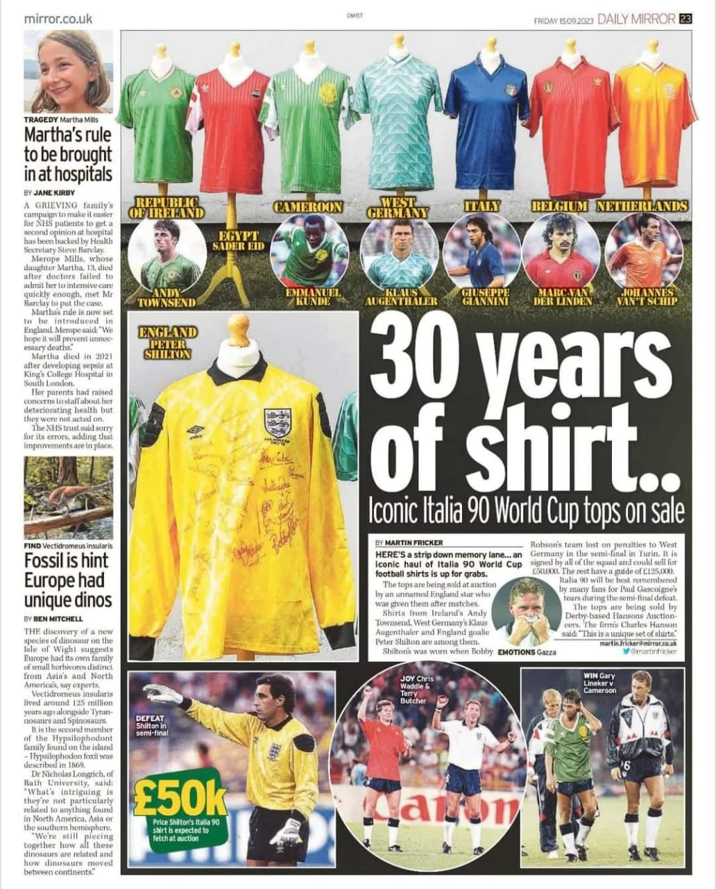 قام أحد لاعبي منتخب إنجلترا السابقين، بعرض 8 قمصان للبيع في مزاد، ومن بينها قميص منتخب مصر الذي حصل عليه في كأس العالم 1990.