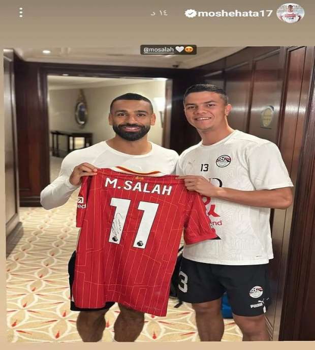 ومنح محمد صلاح قائظ الفراعنة قميصه مع الفريق الإنجليزي هدية إلى زميله محمد شحاتة لاعب وسط الزمالك، خلال تواجد الثنائي مع الفراعنة استعدادًا لمواجهة بوتسوانا.