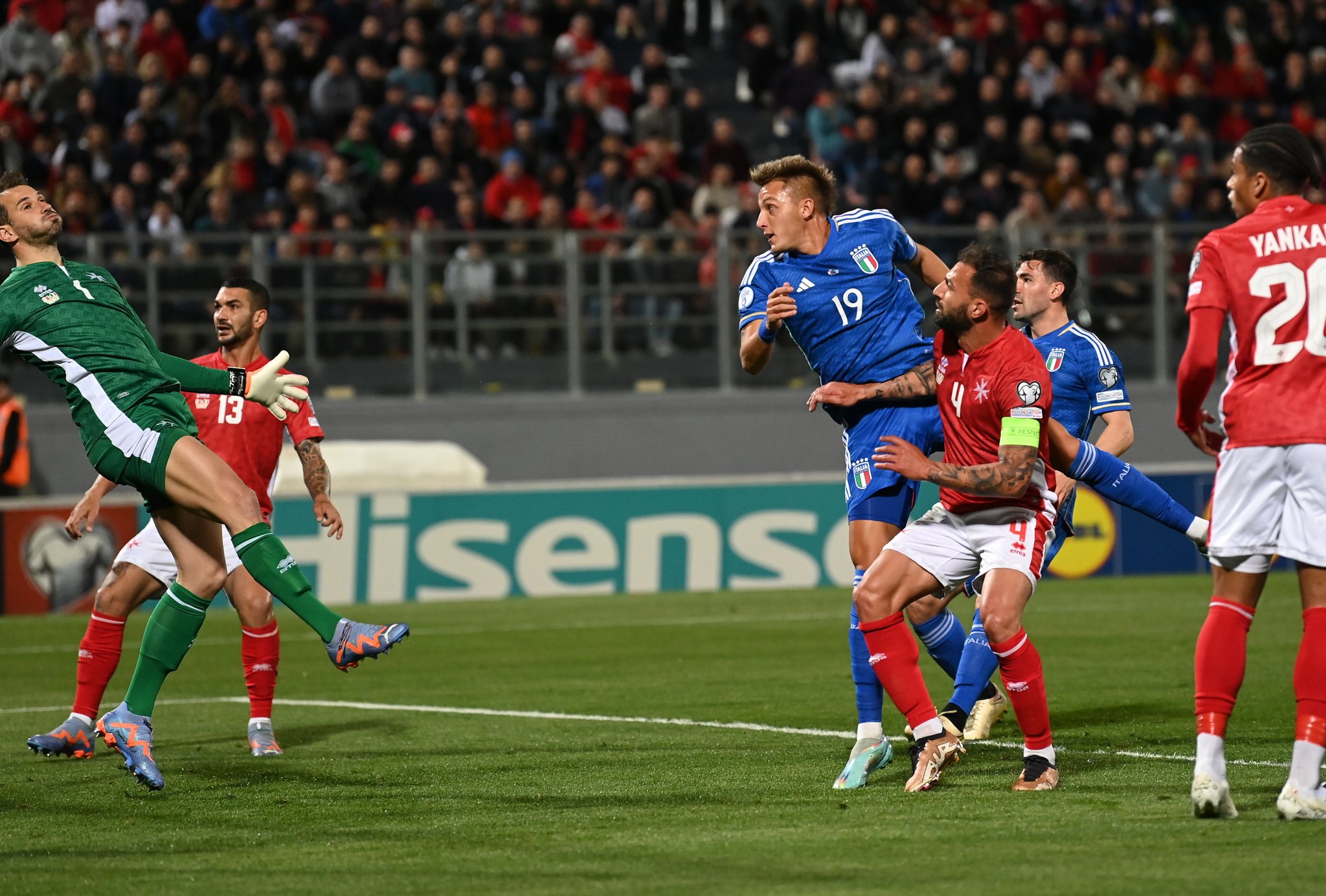 وانتصر منتخب إيطاليا على مالطا بهدفين نظيفين في ثاني جولات المجموعة الثالثة في تصفيات أمم أوروبا، وافتتح ريتيجي النتيجة، مواصلًا التسجيل في مباراته الدولية الثانية، بعدما هز شباك إنجلترا في الأولى.
