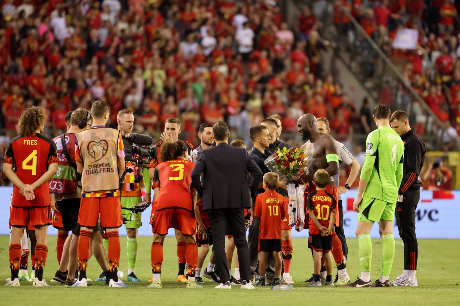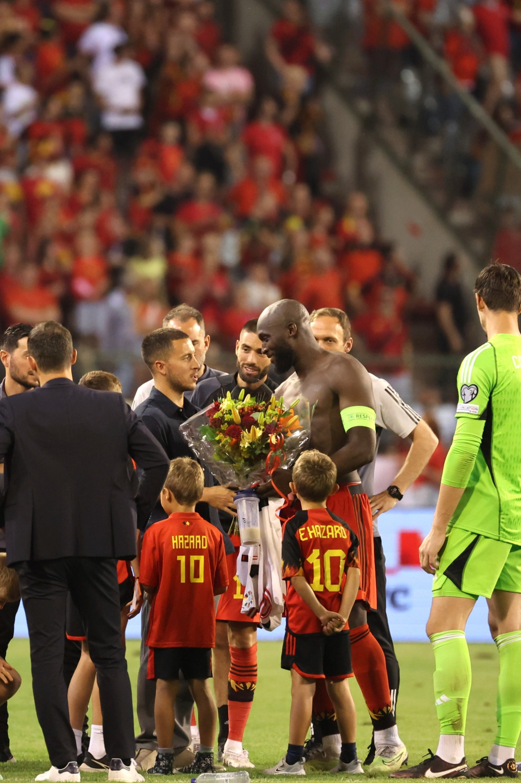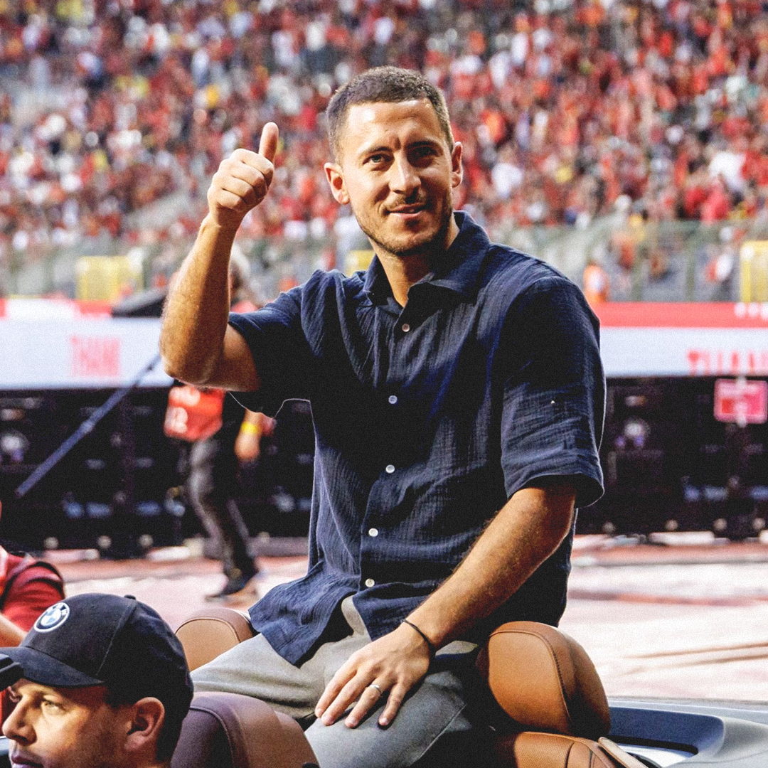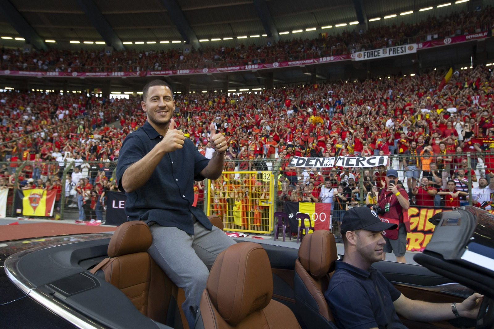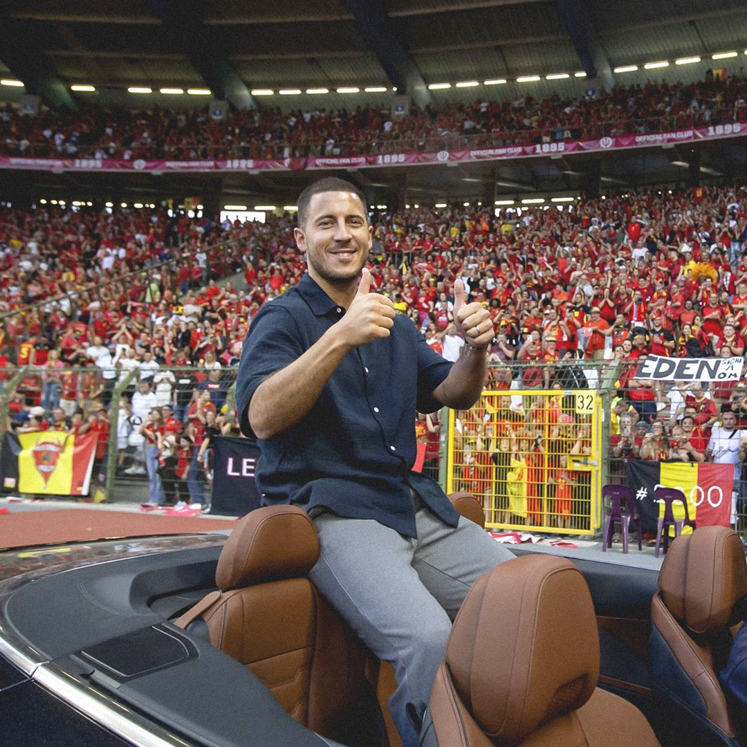 وظهر هازارد في سيارة مكشوفة في ملعب الملك بودوان في العاصمة البلجيكية بروكسل، بين شوطي المباراة ضد النمسا.
