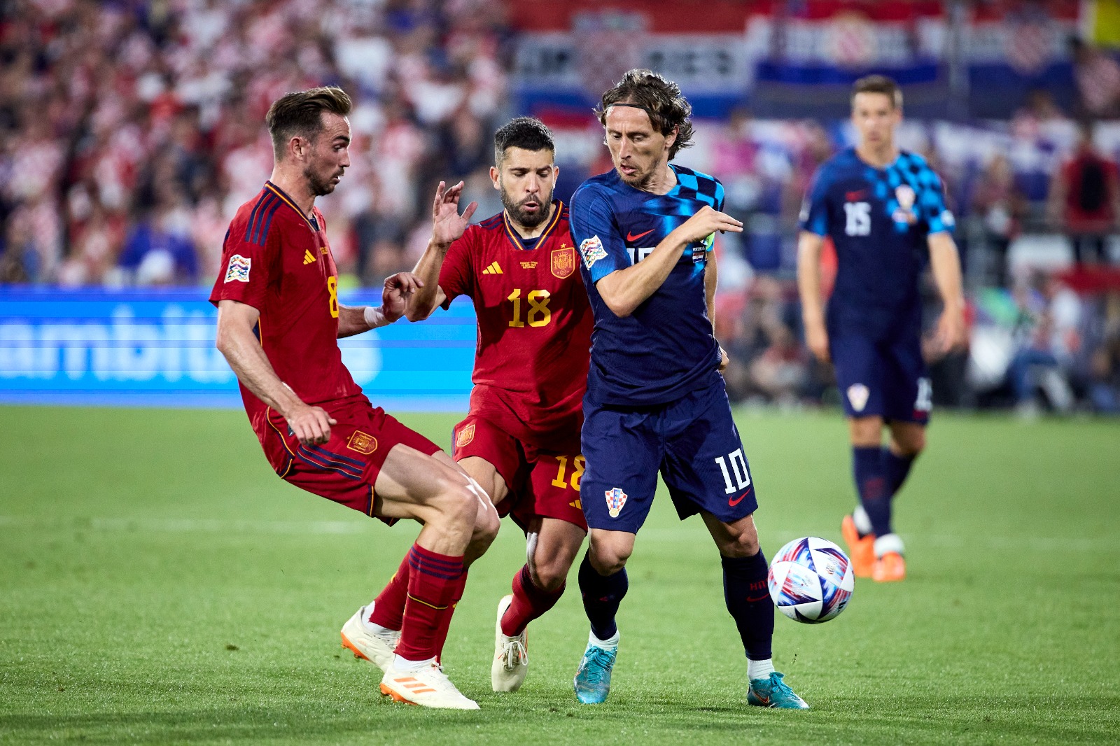 وكان منتخب إسبانيا تأهل إلى نهائي دوري الأمم الأوروبية بعد فوزه على إيطاليا (2-1) في منافسات المربع الذهبي، بينما وصلت كرواتيا على حساب هولندا بالفوز (4-2).