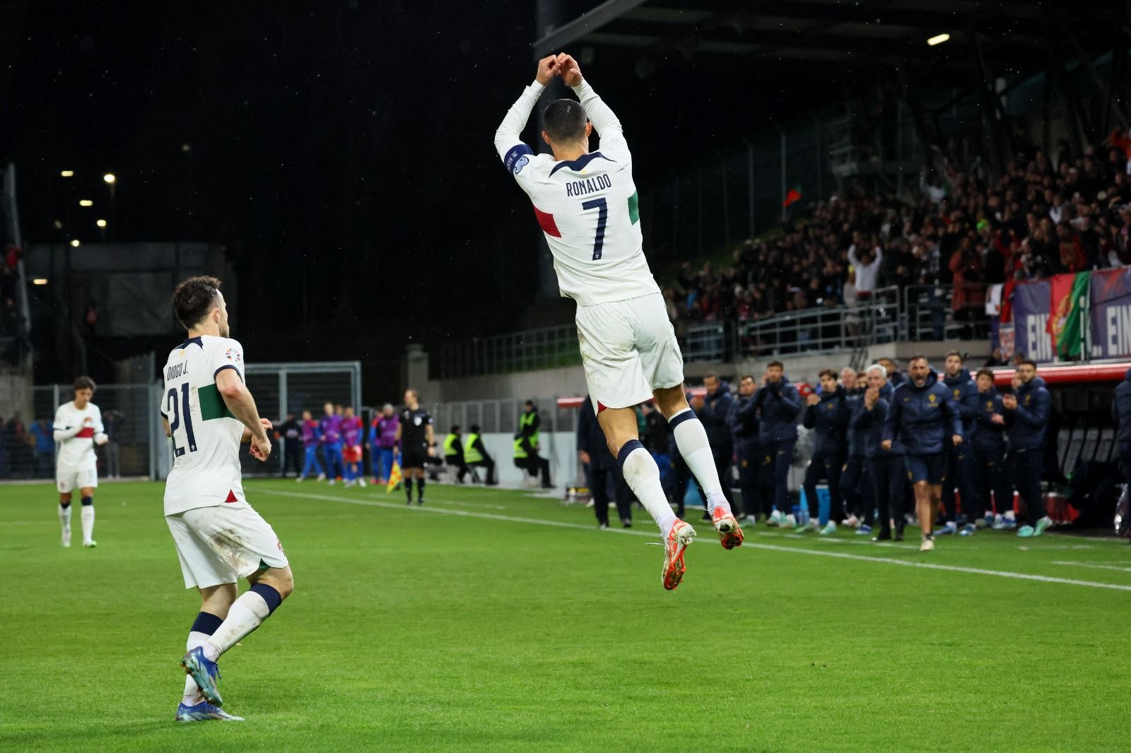 ووصل كريستيانو رونالدو إلى الهدف رقم 128 هدف، ليعزز رقمه التاريخي كأكثر لاعب تسجيلًا للأهداف مع المنتخبات وذلك خلال 204 مشاركة، فيما صنع 45 هدف آخرين.
