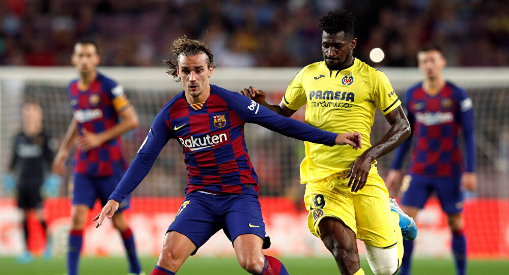 بدأ الشوط الأول متكافئ بين الفريقين حتى نجح اللاعب صامويل تشوكويزي من افتتاح التسجيل لأصحاب الأرض في الدقيقة 26، لكن الرد جاء سريعًا جدًا حيث تمكن النجم الفرسي أنطوان جريزمان من معادلة النتيجة للبلوجرانا بعد دقيقتين فقط، ثم أضاف الهدف الثاني له ولفريقه في الدقيقة 35، لينتهي الشوط الأول بتقدم برشلونة بهدفين لهدف.