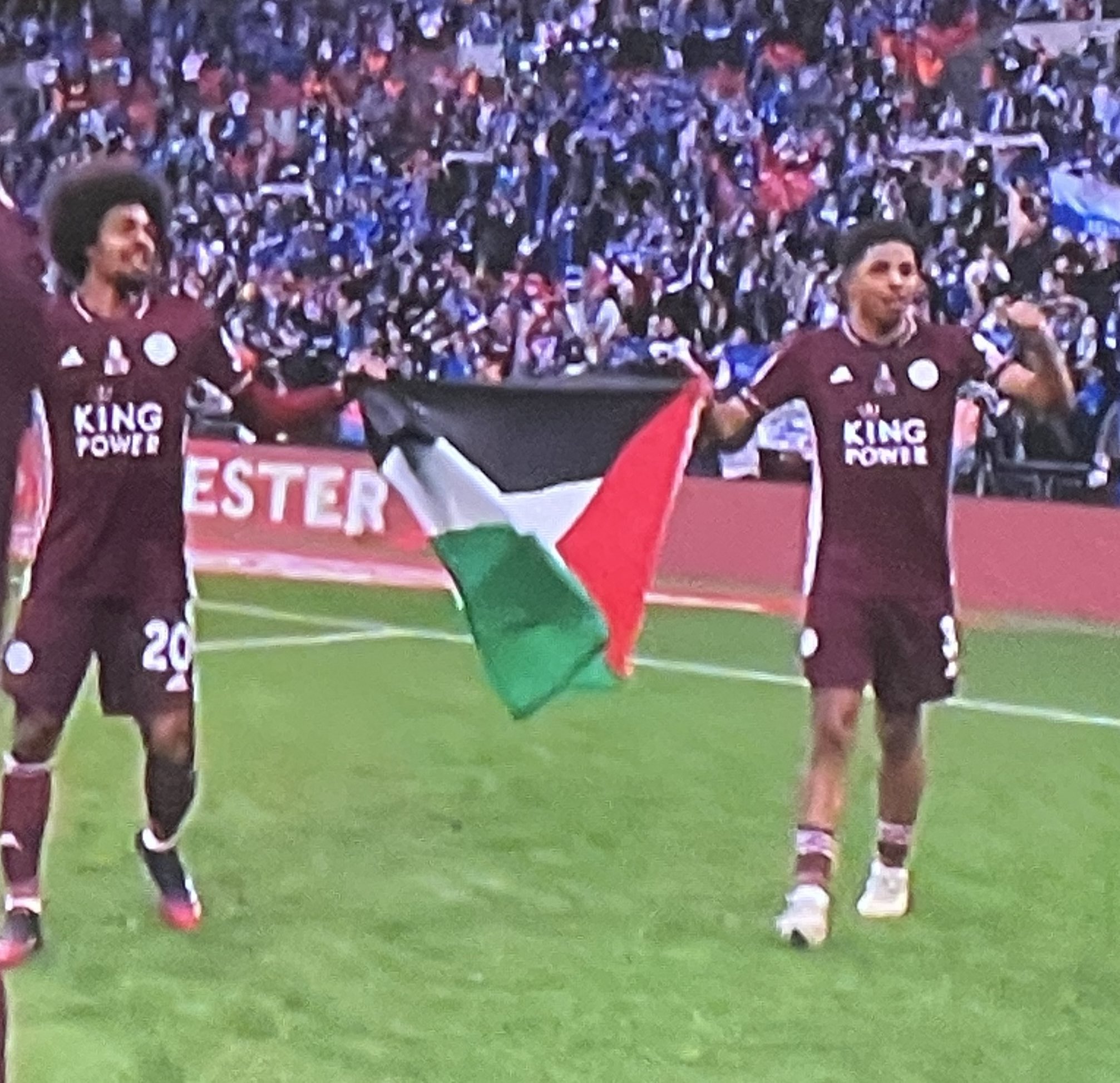 وعقب نهاية المباراة قام لاعبو ليستر سيتي برفع العلم الفلسطيني أثناء احتفالهم بالفوز بكأس الاتحاد الإنجليزي، ليبدي لاعبي ليستر تعاطفهم مع الشعب الفلسطيني في ظل العمليات الإرهابية التي تقوم بها قوات الكيان الصهيوني ضد الفلسطينيين.
