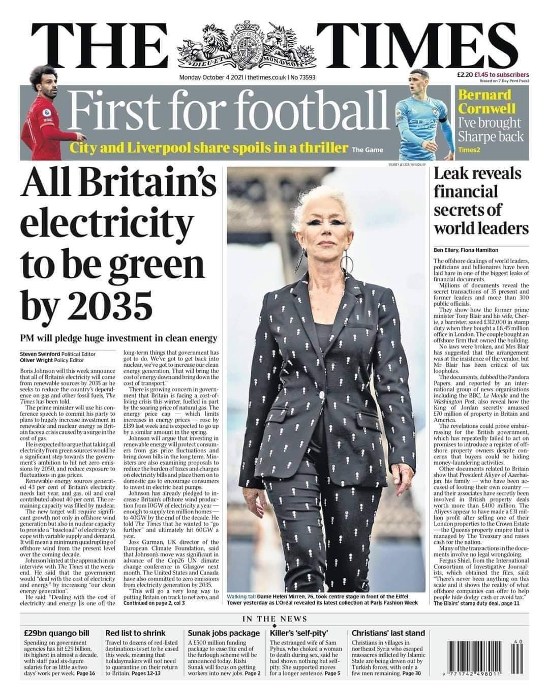 وعنون غلاف صحيفة “تايمز”: “سيتي وليفربول يتشاركان النقاط في تعادل مثير”.