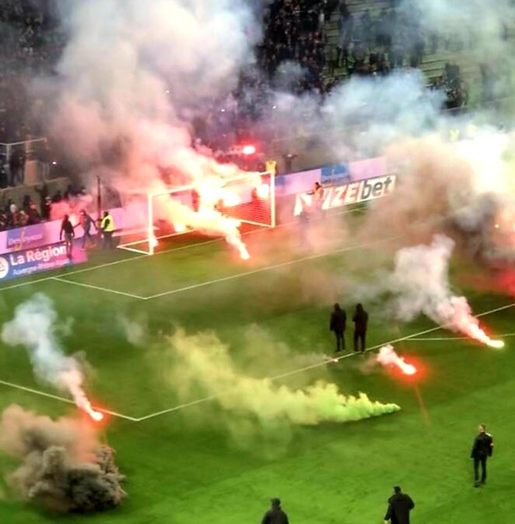 وألقت جماهير سانت إيتيان الألعاب النارية على أرض الملعب، مما أدى إلى تمزق شباك المرمى فور دخول اللاعبين، ليقوم حكم اللقاء بتأجيلها ساعة.