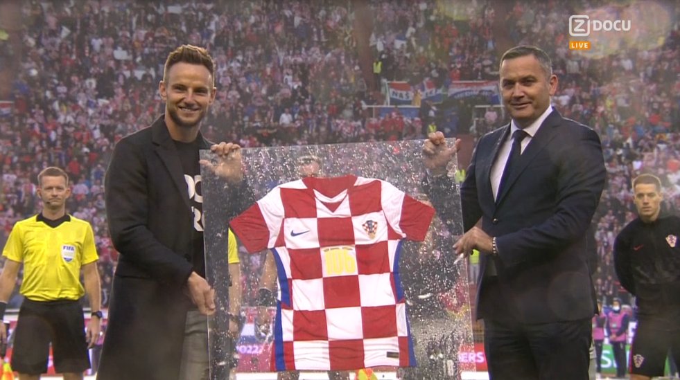 وقدم رئيس الاتحاد الكرواتي، قميصًا تذكاريًا لـ راكيتيتش يحمل رقم 106 وهو عدد مبارياته مع منتخب بلاده.