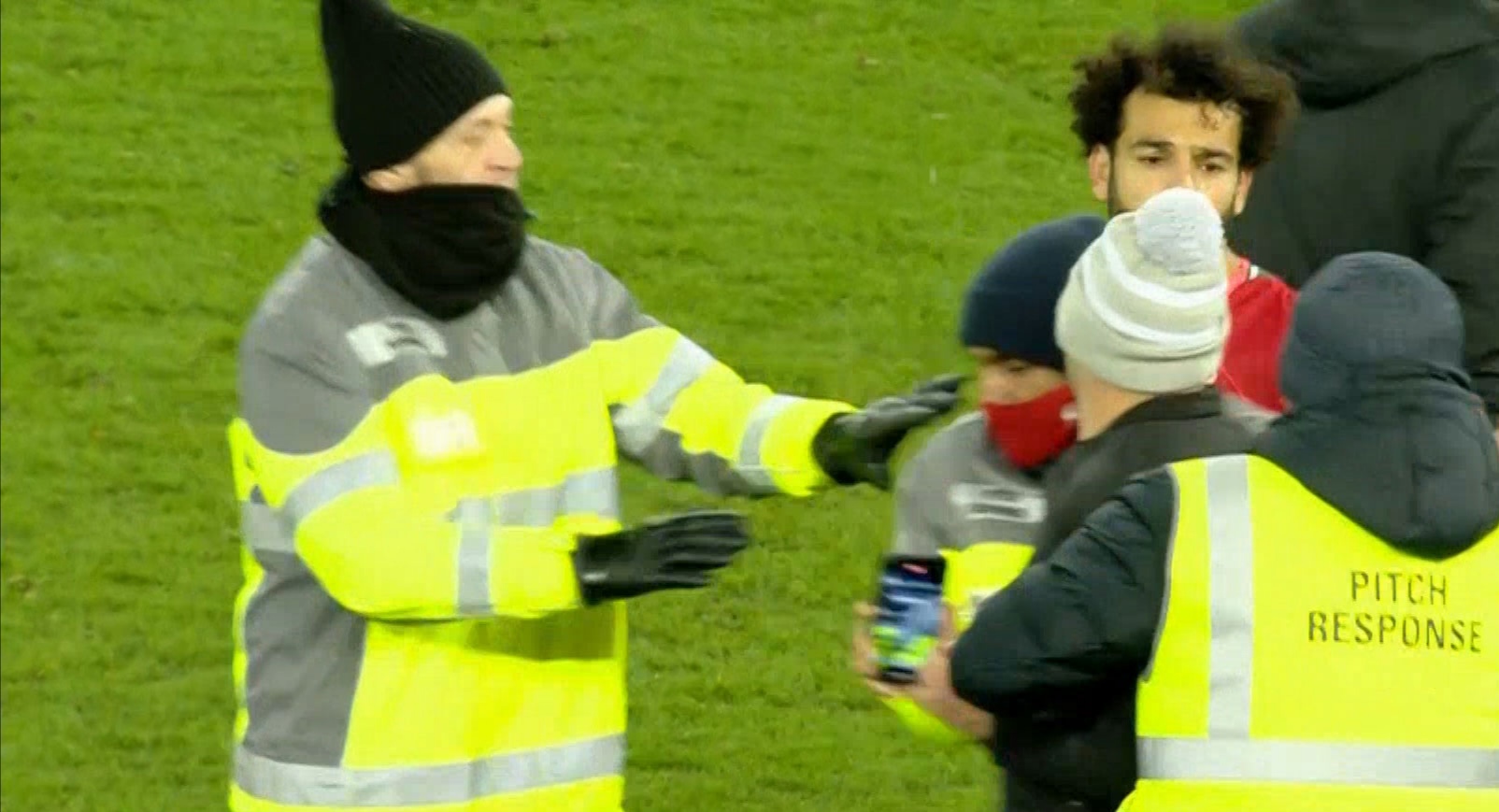 وقام أحد المشجعين باقتحام ملعب مباراة ليفربول وساوثهامبتون، عقب انتهاء اللقاء مباشرة وتوجه إلى محمد صلاح المحترف المصري ضمن صفوف الريدز، من أجل التقاط صورة “سيلفي”، ليتدخل الآمن سريعًا.