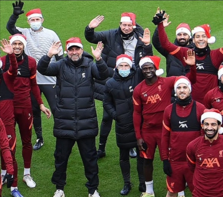 وظهر محمد صلاح في مقدمة اللاعبين، احتفالًا بالكريسماس، خلال استعدادات ليفربول لمواجهة ليستر سيتي ببطولة الدوري.