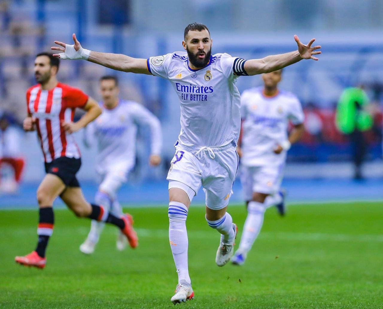 وأصبح كريم بنزيما ثاني لاعب يسجل في أربع مباريات متتالية في السوبر الإسباني منذ 2010 (4 أهداف).