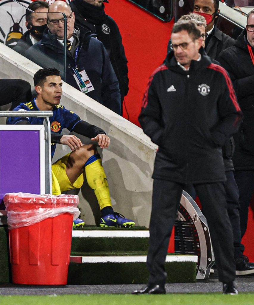 وأبدى رونالدو، غضبه وعدم رضاه، بعدما تم استبداله في مباراة برينتفورد في الدقيقة 71، وشارك بدلاً منه هاري ماجواير.