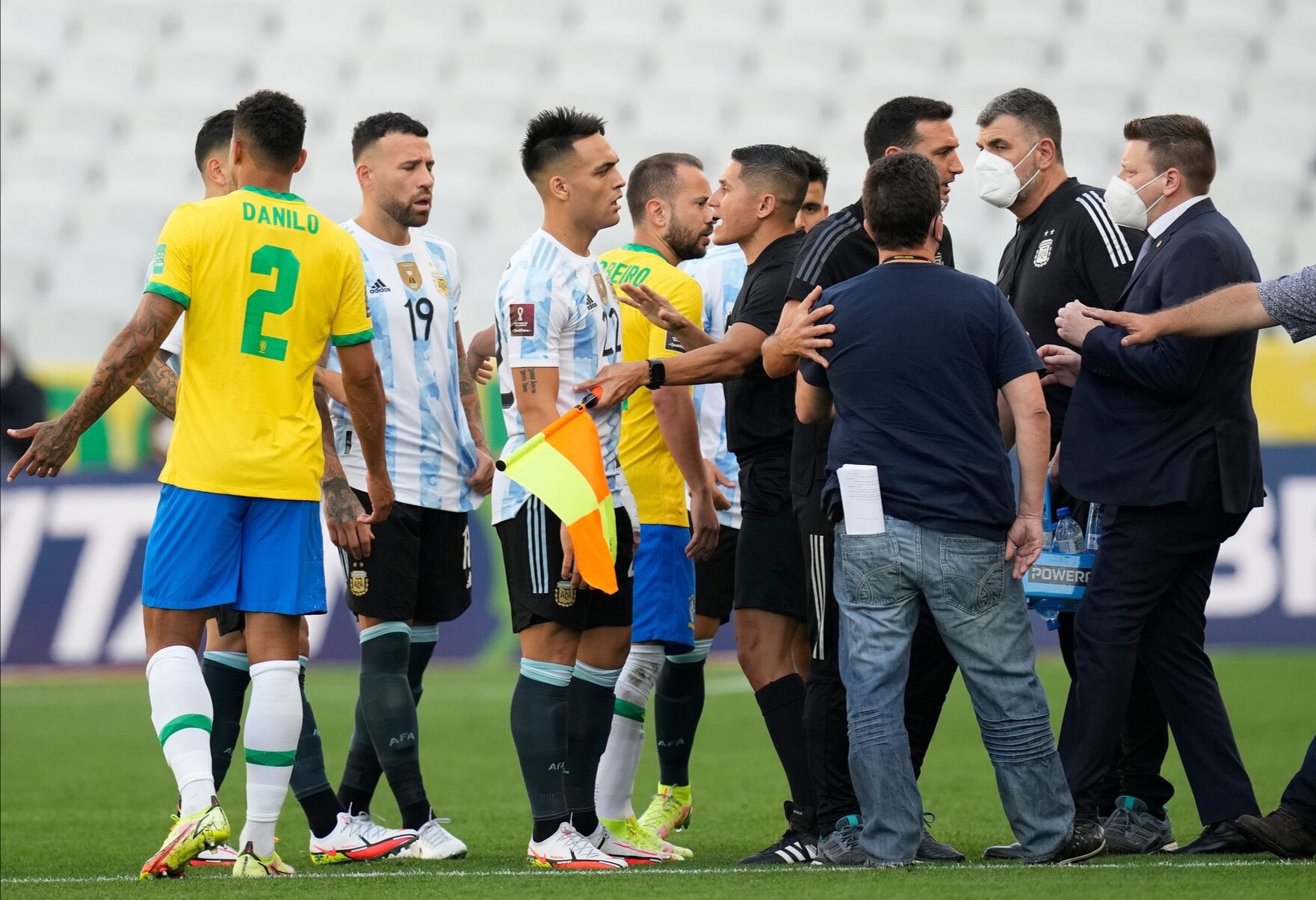 وتم إيقاف مباراة البرازيل والأرجنتين في تصفيات كأس العالم 2022، بسبب اقتحام السلطات الصحية البرازيلية أرض الملعب لترحيل إيميليانو مارتينيز، وجيوفاني لوسيلسو، وكريستيان روميرو.
