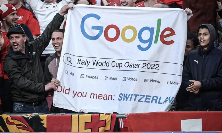 وكتبت الجماهير على اللافتة التالي:”إيطاليا في كأس العالم قطر 2022″، ليأتي التصحيح على حد قصدهم” هل قصدت سويسرا”.