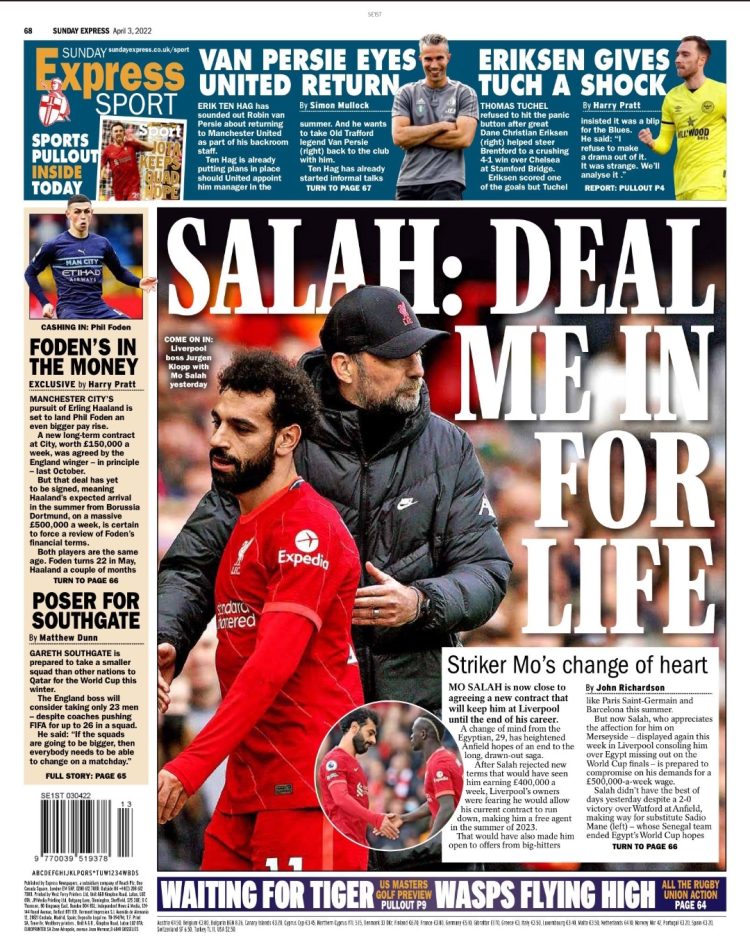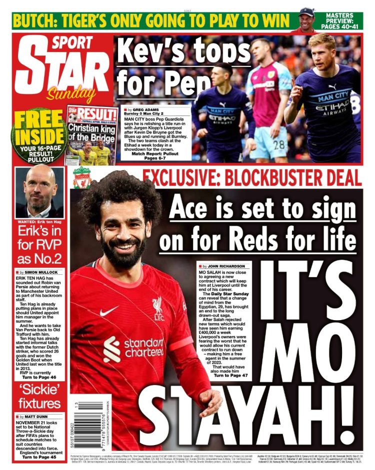 من جانبها أكدت صحيفة «ديلي ستار» البريطانية أن محمد صلاح وافق على تجديد عقده مع ليفربول بعقدٍ سيبقيهِ في النادي حتى نهاية مسيرته الكروية وبمرتب يُقدر بـ 400,000 جنيه إسترليني في الأسبوع.