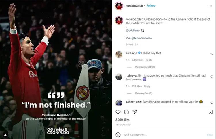وكتب رونالدو في تعليق عبر حسابه الشخصي بموقع “إنستجرام”: “لم أقل ذلك”، لتعود التكهنات من جديد حول مستقبله مع الفريق.