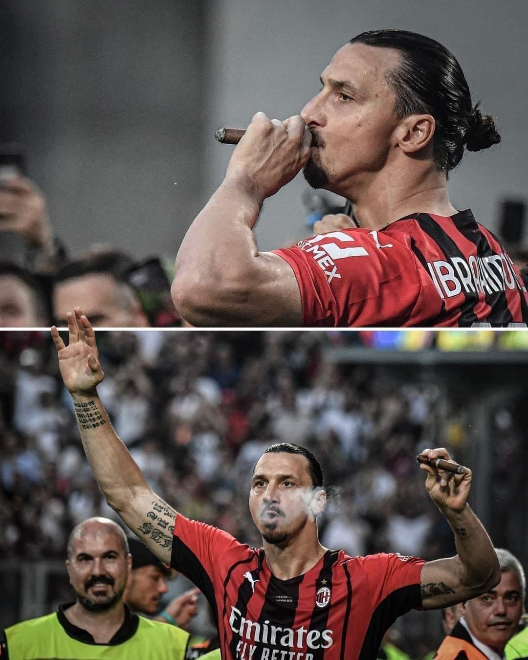 “سيجار” إبراهيموفيتش يخطف الأنظار في مراسم تتويج ميلان بالدوري الإيطالي.. شاهد