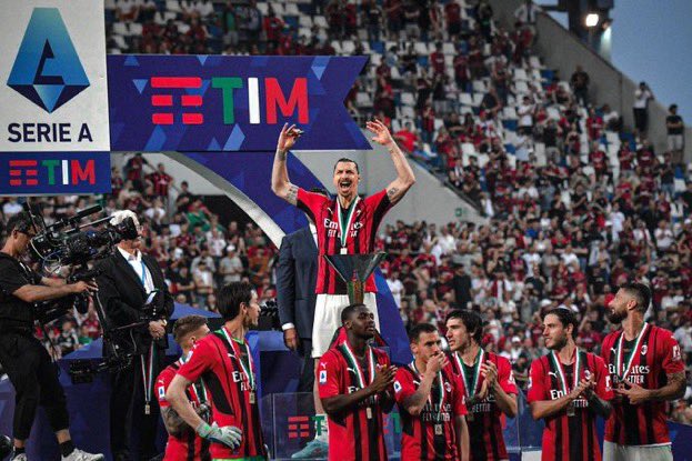 ظهر زلاتان إبراهيموفيتش نجم الفريق الأول لكرة القدم بنادي ميلان الإيطالي، في احتفال خاص خلال مراسم التتويج بلقب الدوري.