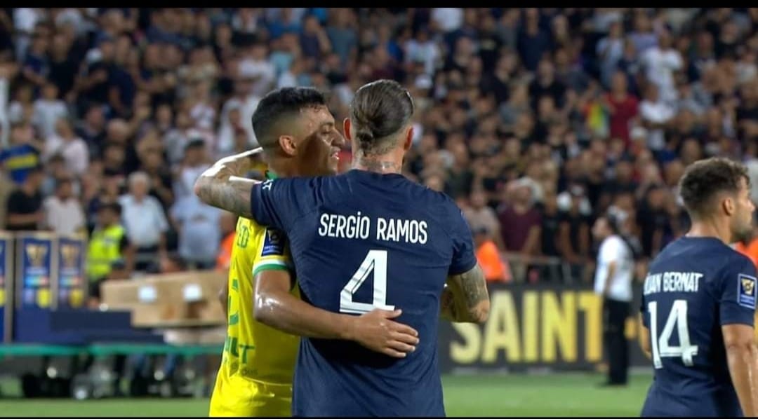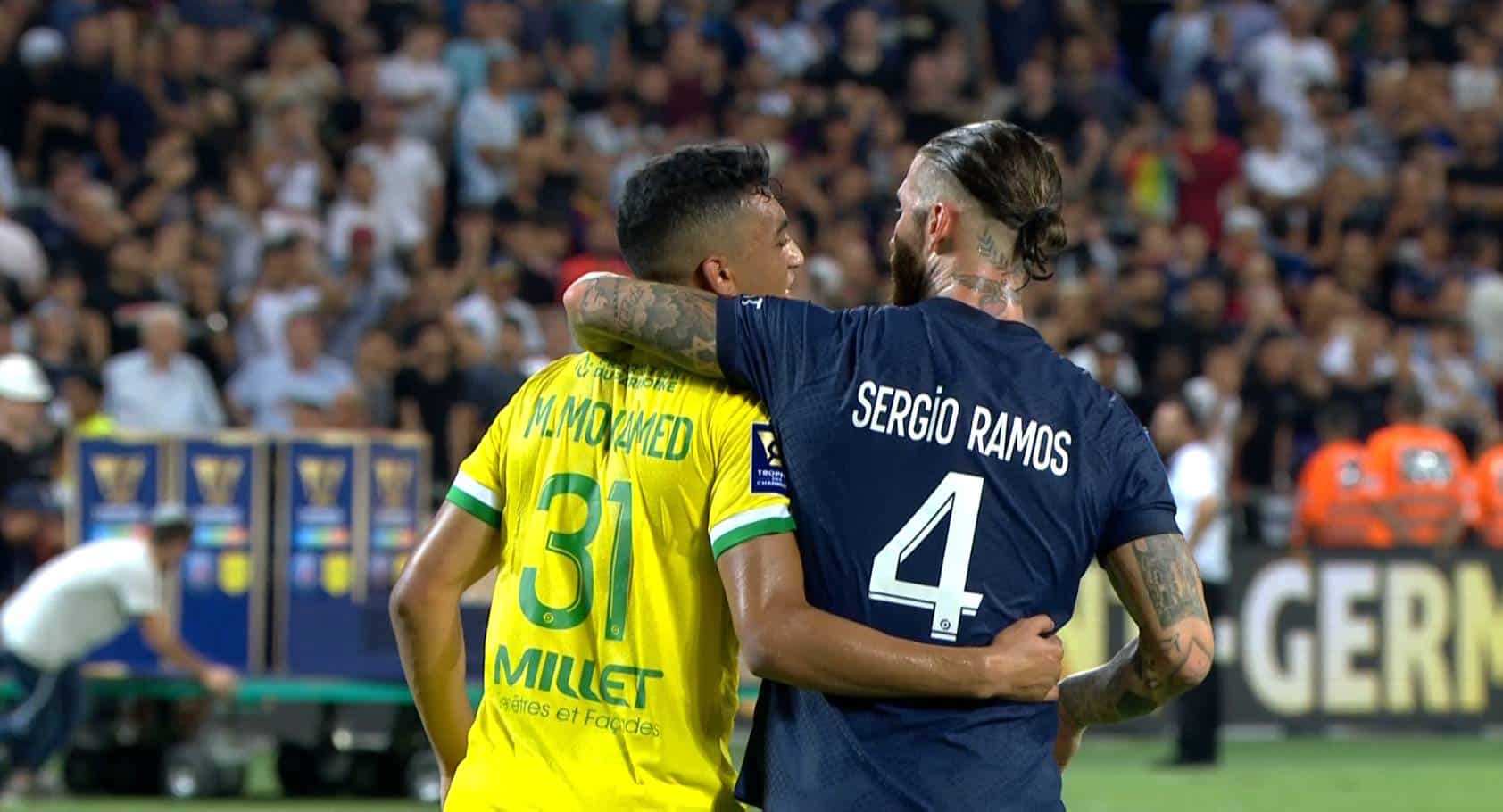 سيرجيو راموس لاعب باريس سان جيرمان، عقب انتهاء مباراة كأس السوبر، قام باحتضان مصطفى محمد.