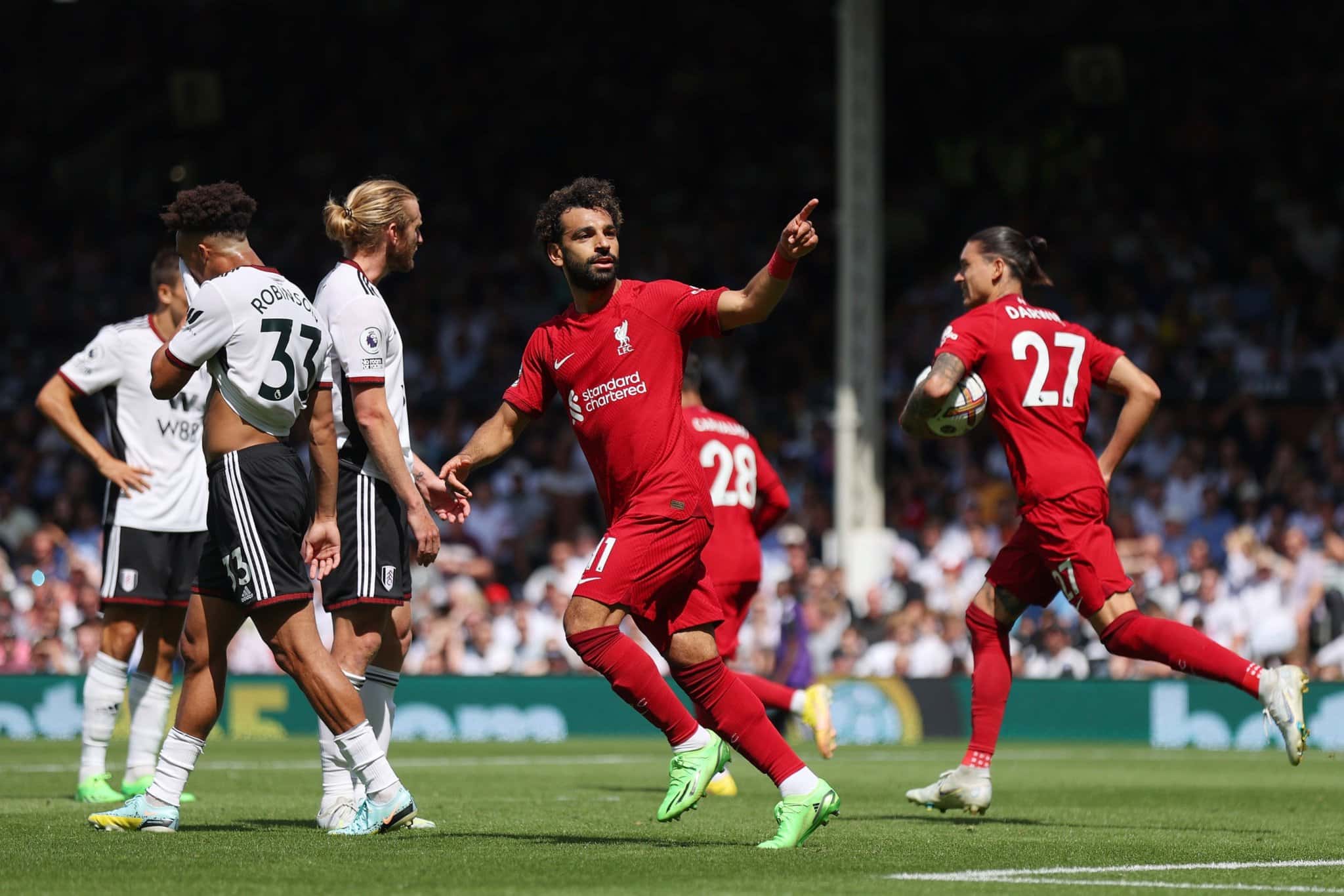 وسجل الدولي المصري محمد صلاح، هدف ليفربول الثاني في الدقيقة 80، بعدما أحرز فولهام التقدم من ركلة جزاء في الدقيقة 72.