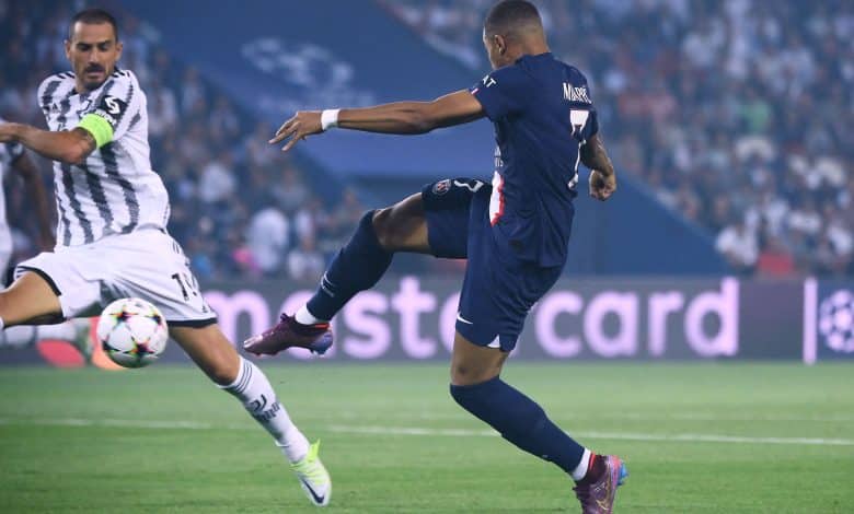 باريس سان جيرمان يصعق يوفنتوس بثنائية مبابي في الشوط الأول