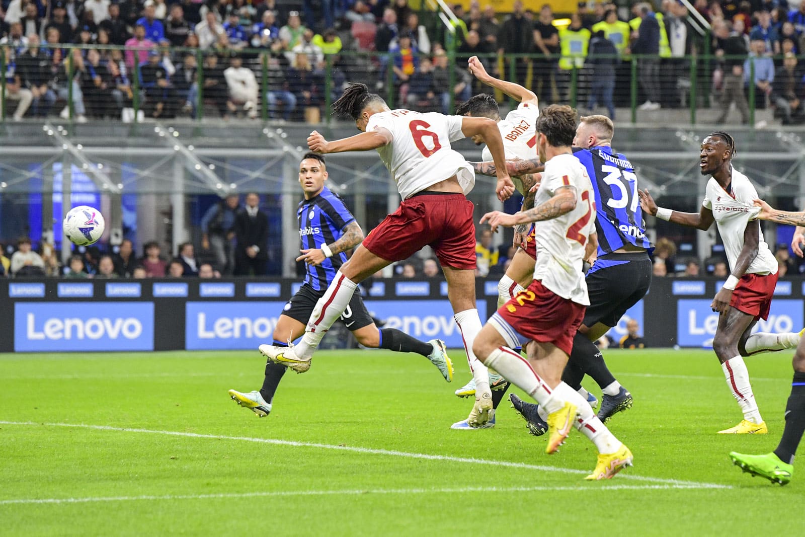 وأدرك الأرجنتيني باولو ديبالا التعادل لـ روما في الدقيقة 39 بعدما حوّل عرضية الإيطالي ليوناردو سبينازولا بتسديدة يسارية فشل حارس إنتر ميلان، السلوفيني سمير هاندانوفيتش، في التصدي لها.
