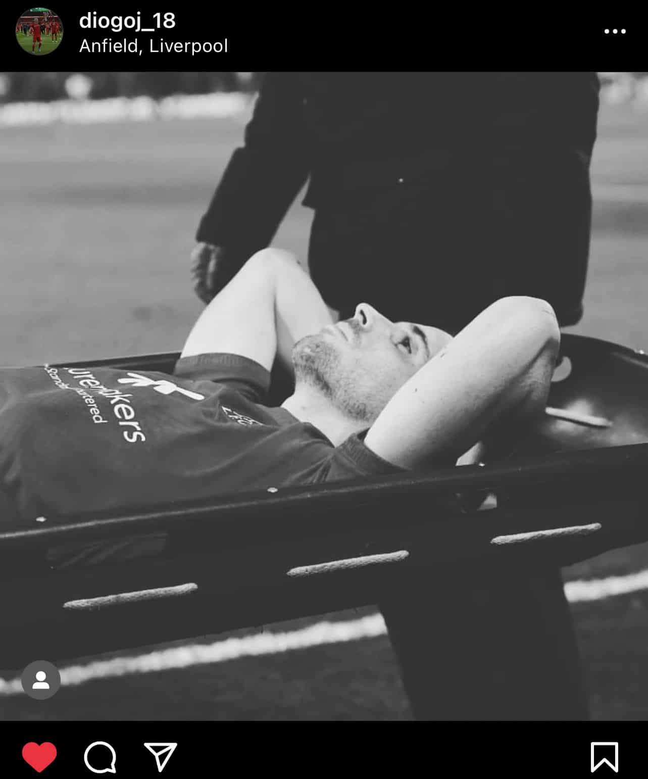 وكتب جوتا عبر حسابه الشخصي في موقع التواصل الاجتماعي «إنستجرام»: “بعد ليلة سعيدة في آنفيلد، ليلتي انتهت بأسوء طريقة! بآخر دقيقة انهار احد أحلامي، لكني سأدعم النادي ومنتخبنا الوطني وساُقاتل على العودة للعب بأقرب وقت. لن تسير لوحدك ابدًا”.