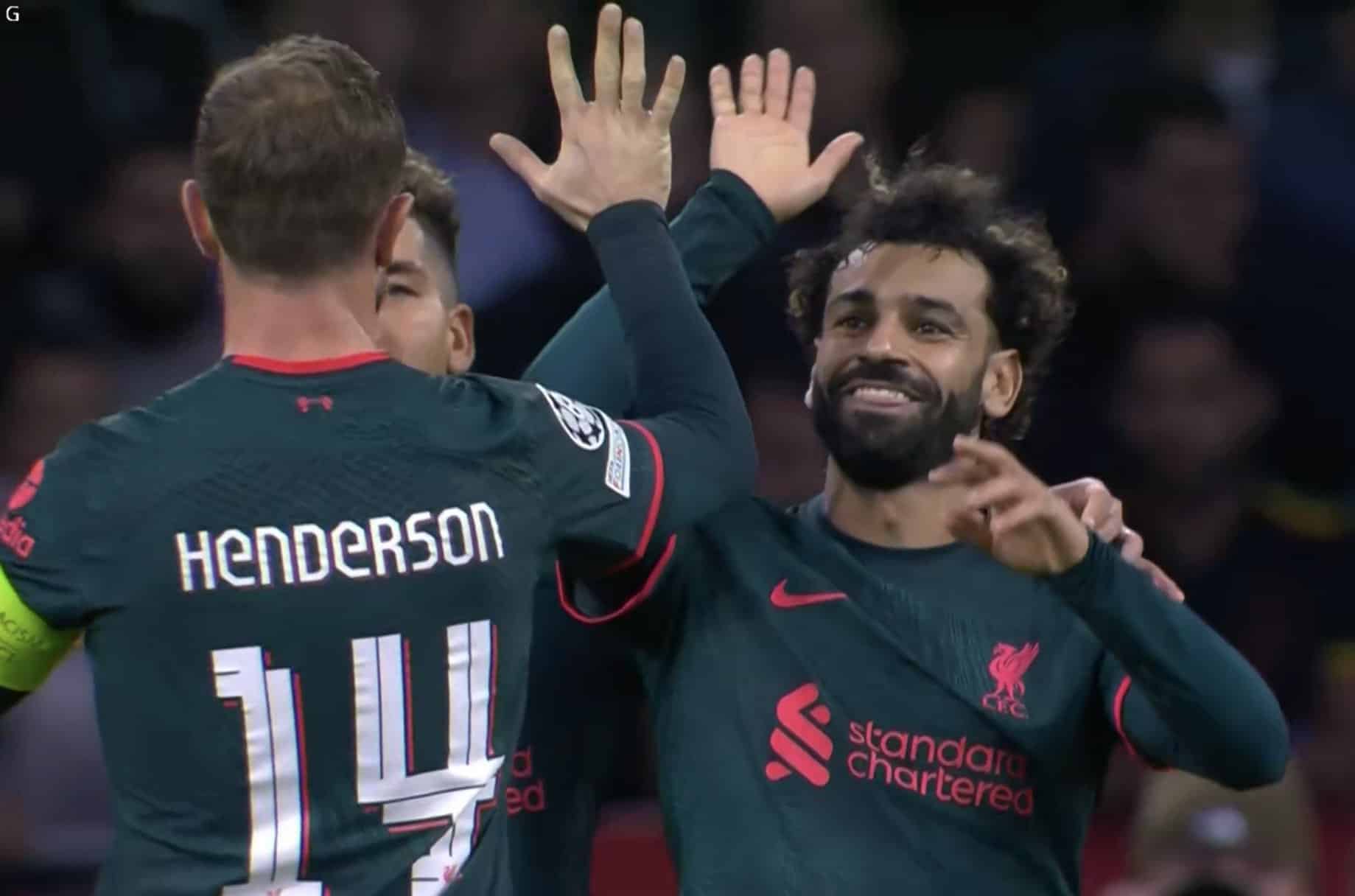 وسجل الدولي المصري محمد صلاح، الهدف الأول لصالح ليفربول في شباك أياكس، في الدقيقة 42 من زمن اللقاء، من لمسة واحدة.