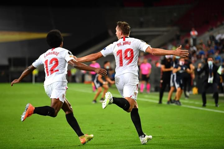 وجاء رد مهاجم إشبيلية، الهولندي لوك دي يونغ، قويًا بتسجيلة هدفين من ضربتين رأسيتين في الدقيقتين 12 و33، ليُصبح سابع لاعب يسجل ثنائية في نهائي الدوري الأوروبي.