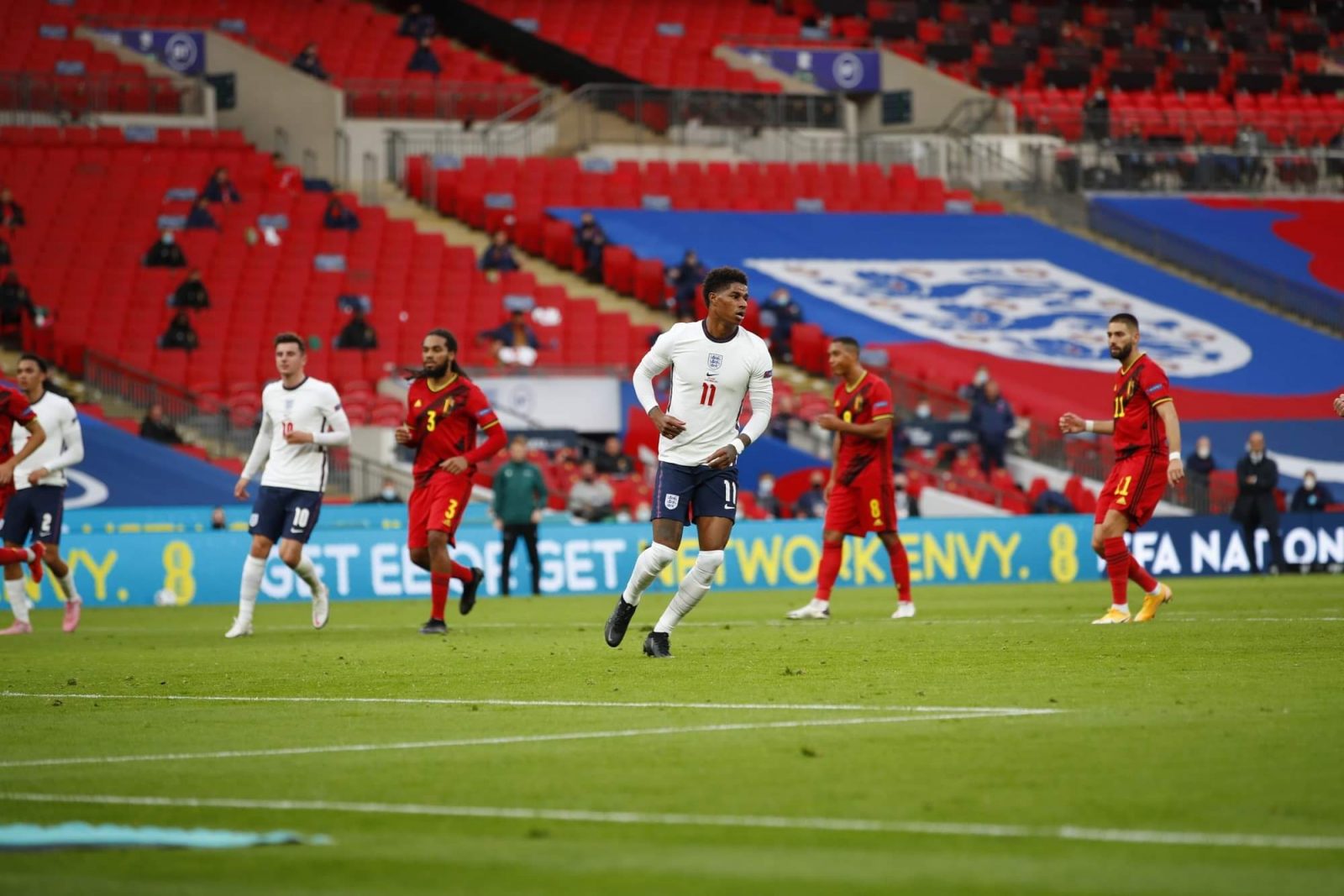 وافتتح منتخب الشياطين الحمر النتيجة بواسطة روميلو لوكاكو في الدقيقة 16 من ركلة جزاء، وأدرك ماركوس راشفورد لمنتخب الأسود الثلاثة في الدقيقة 39 من ركلة جزاء أيضًا.