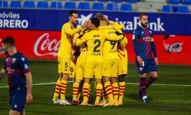 وسجل هدف البارسا، الهولندي فرينكي دي يونغ، في الدقيقة 27 بعدما حوّل عرضية الأرجنتيني ليونيل ميسي الرائعة بلمسة واحدة في شباك هويسكا.