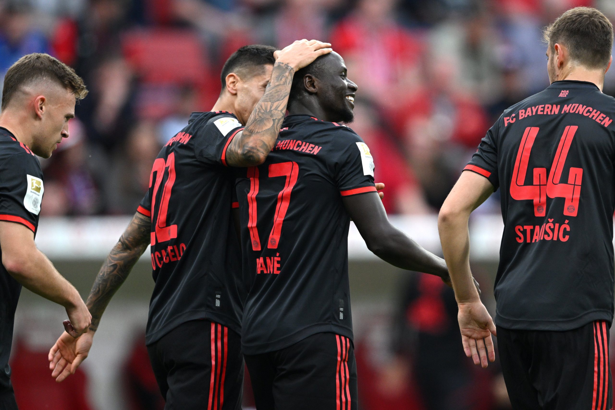 احتفال ساديو ماني ولاعبي بايرن ميونيخ بالهدف أمام ماينز