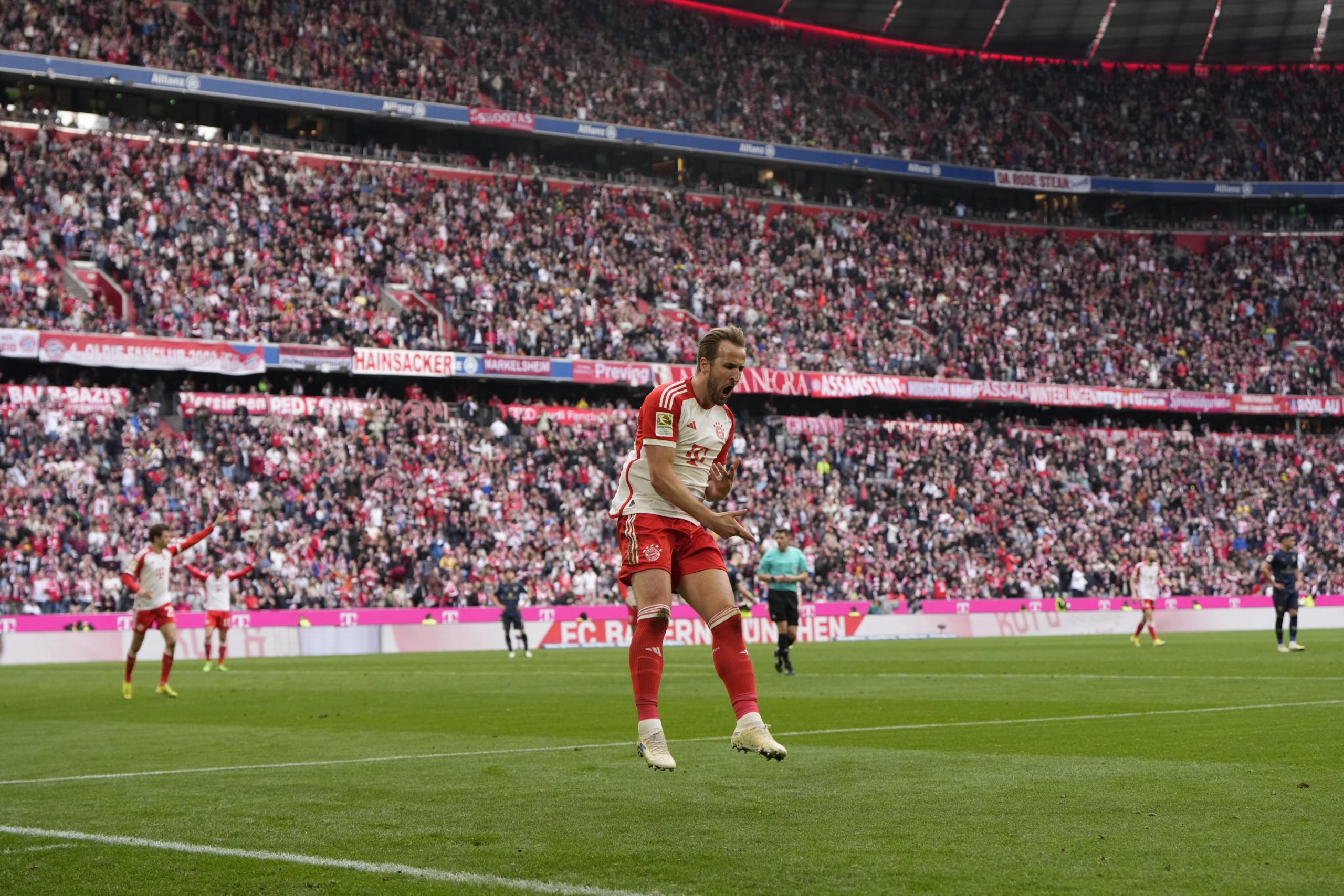 وسجل الدولي الإنجليزي هاري كين، ثلاثة أهداف “هاتريك” لـ بايرن ميونخ.