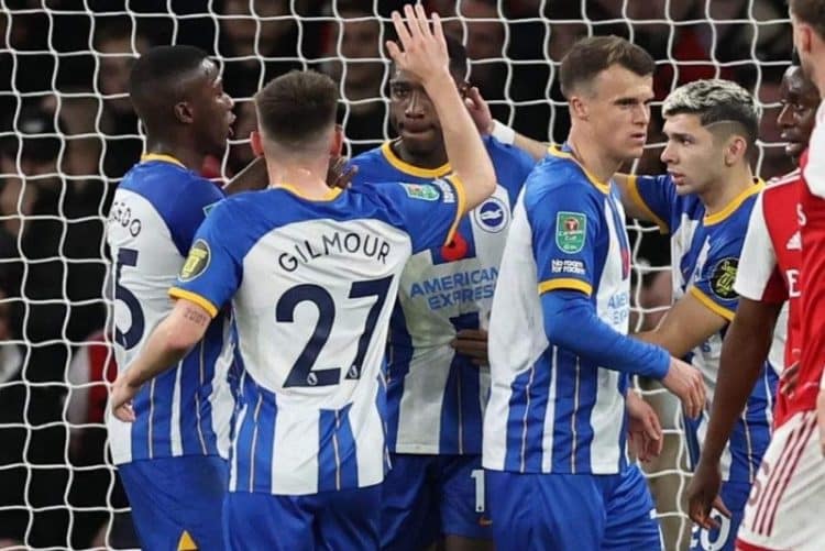 بهذا الفوز فجر فريق برايتون آند هوف ألبيون مفاجأة من العيار الثقيل بالإطاحة بفريق أرسنال من الدور الثالث من بطولة كأس الرابطة الإنجليزية.