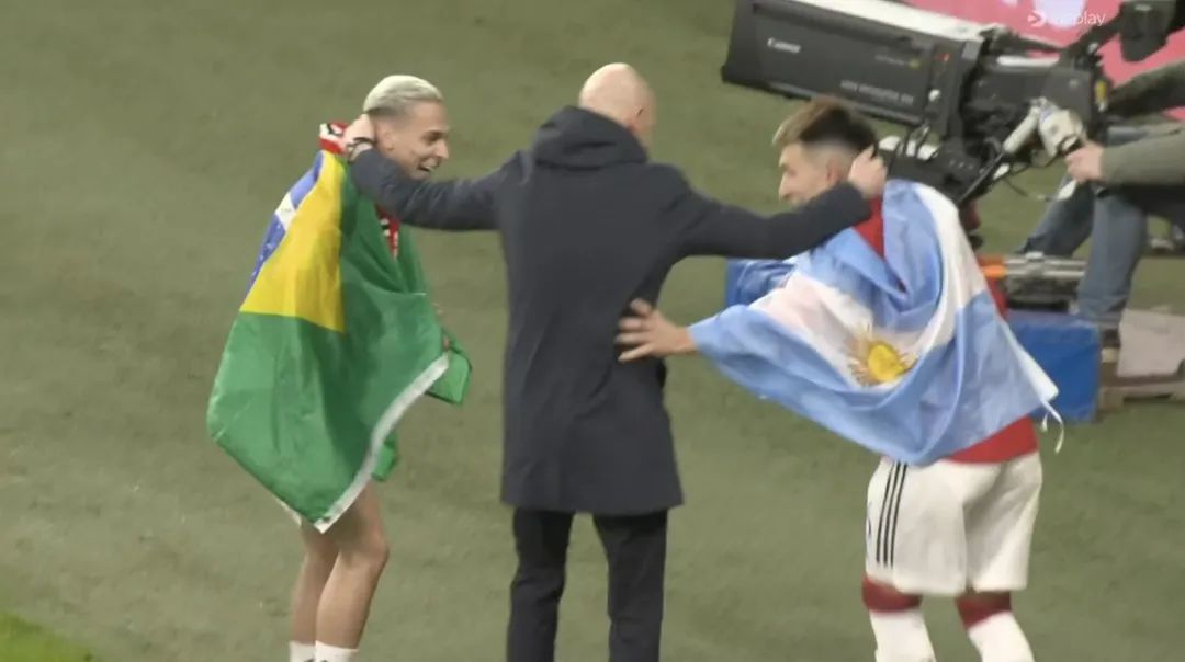 وعبر تين هاج عن سعادته بوصلة رقص مع أنتوني ومارتينيز، واللذان أحضرهما معه من أياكس أمستردام الهولندي، ما يجعل العلاقة خاصة بعض الشيء مع الثنائي.