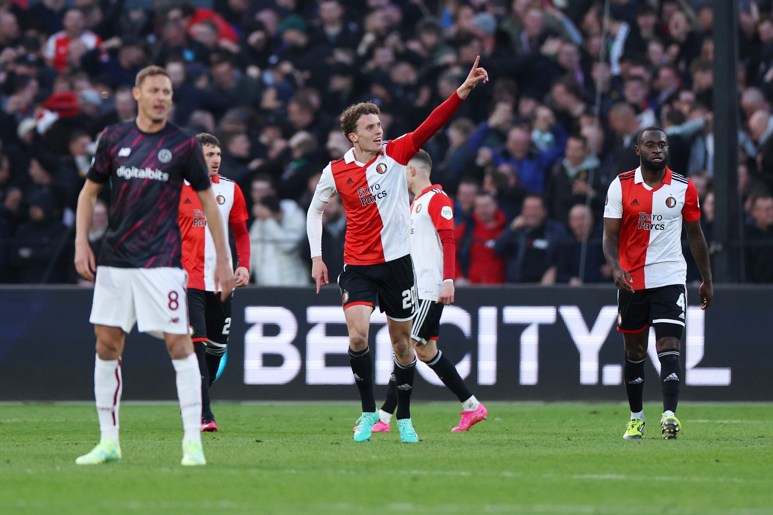 احتفال ماتس ويفر بتسجيل هدف فينورد أمام روما - الدوري الأوروبي