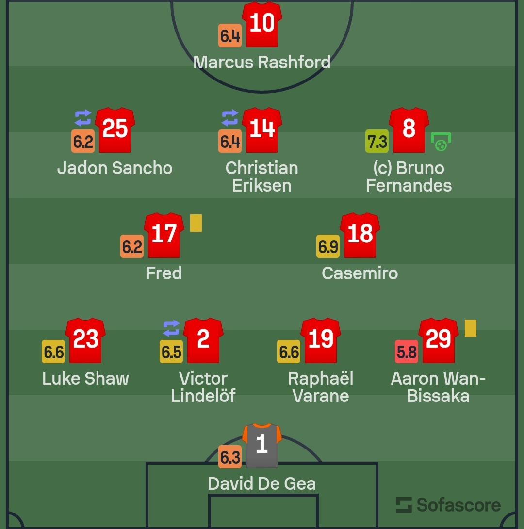 وحصل إيرلينج هالاند والحارس أورتيجا، حصلوا على أسوأ تقييم بين لاعبي الفريق بـ6.6.