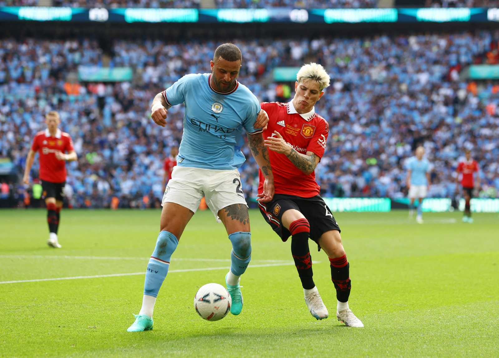 وأقيمت مباراة نهائي كأس الاتحاد الإنجليزي، بين مانشستر سيتي والمان يونايتد، اليوم السبت، على ملعب ويمبلي.