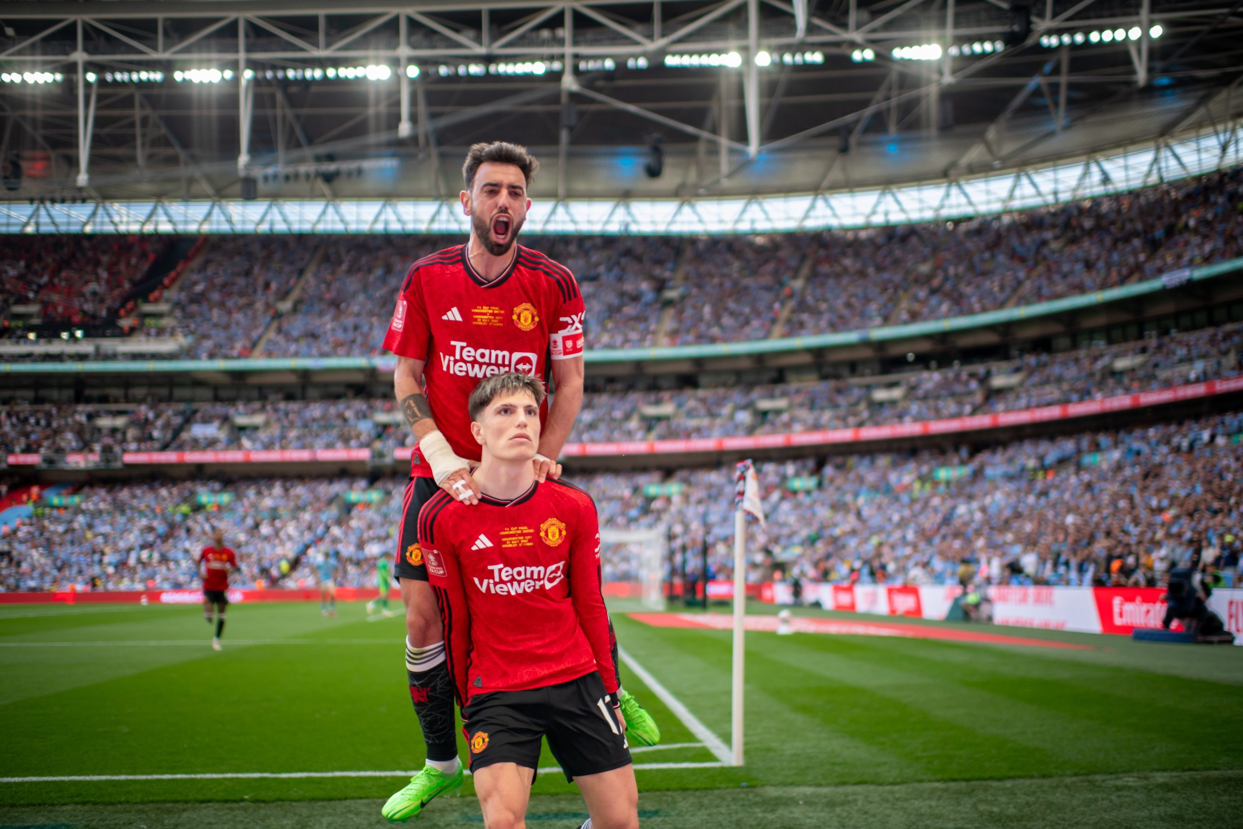 تفوق نادي مانشستر يونايتد، على غريمه التقليدي مانشستر سيتي، بهدفين دون رد في الشوط الأول، من نهائي كأس الاتحاد الإنجليزي، اليوم السبت.