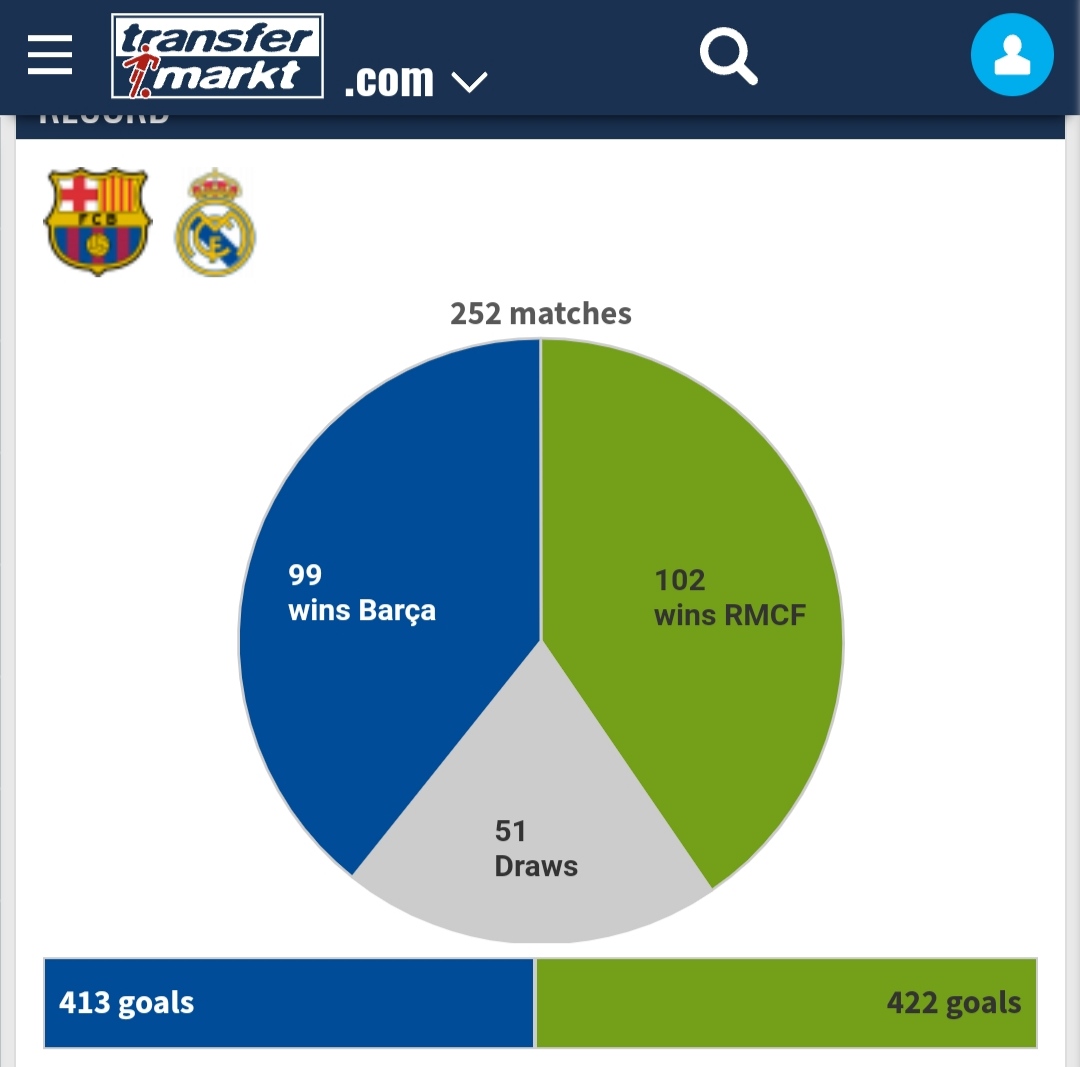 وبحسب شبكة ترانسفير ماركت العالمية، تبلغ القيمة السوقية لنادي ريال مدريد 851 مليون يورو، بينما تبلغ قيمة البرسا 762 مليون يورو.