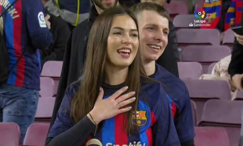 شهدت مدرجات ملعب الكامب نو الذي يحتضن مباراة برشلونة ضد ريال مدريد في كلاسيكو الدوري الإسباني، عرض زواج.