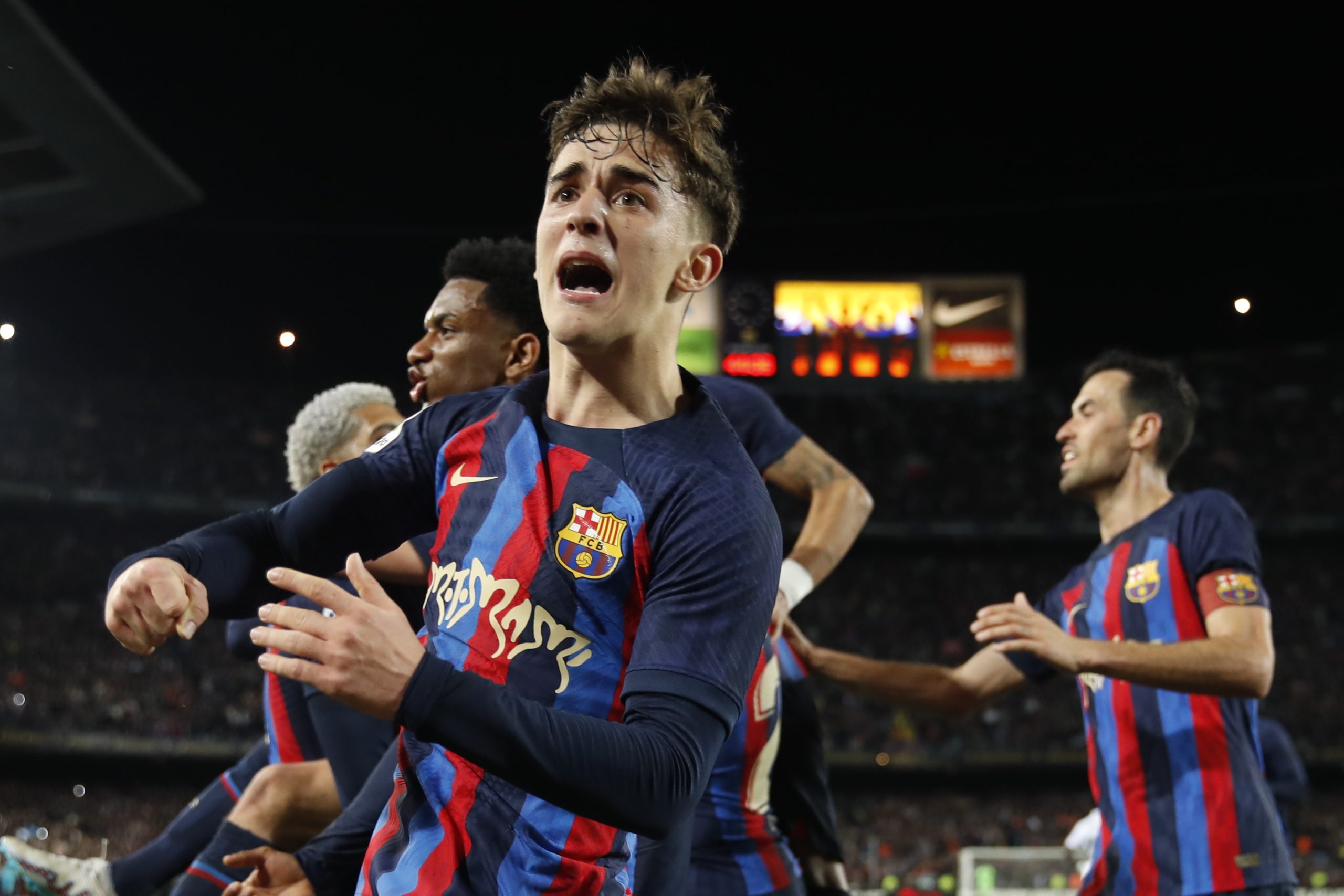 احتفال لاعبي برشلونة بهدف الفوز القاتل أمام ريال مدريد